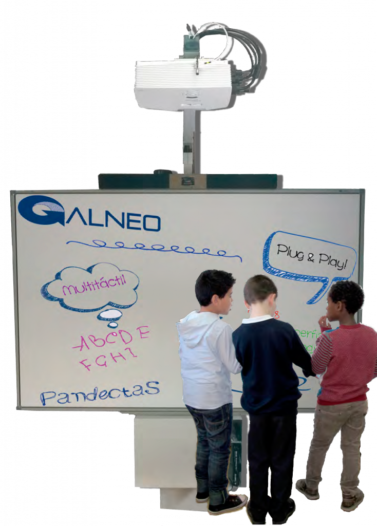 "Pizarras Digitales Interactivas concebidas para cualquier ámbito educativo. Con un diseño estilizado y sólido que soporta el uso diario en todas las aulas. Incluyen su propio Software Educativo "PANDECTAS" totalmente gratuito."